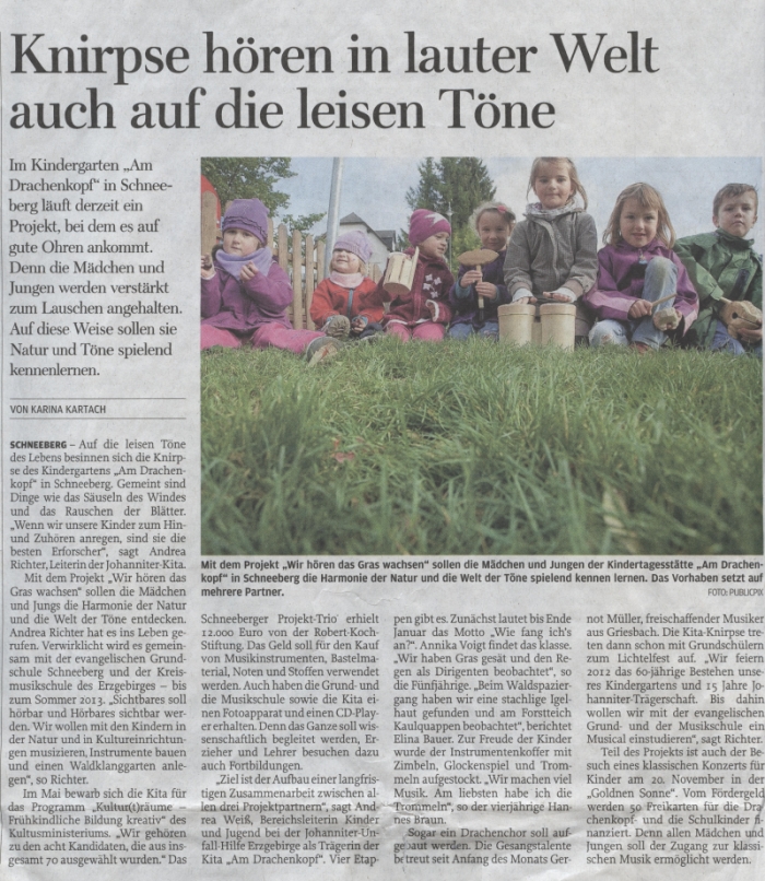 Schneeberg.Auf die leisen Töne des Lebens besinnen sich die Knirpse des Kindergartens "Am Drachenkopf"…