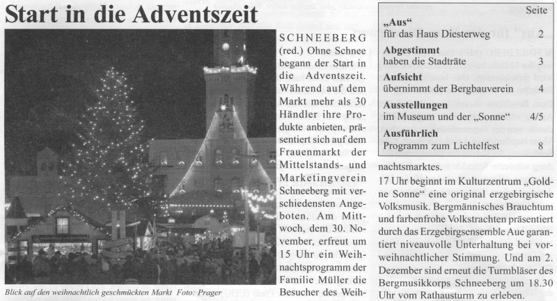 Stadtanzeiger, Schneeberg vom 29. November 2011